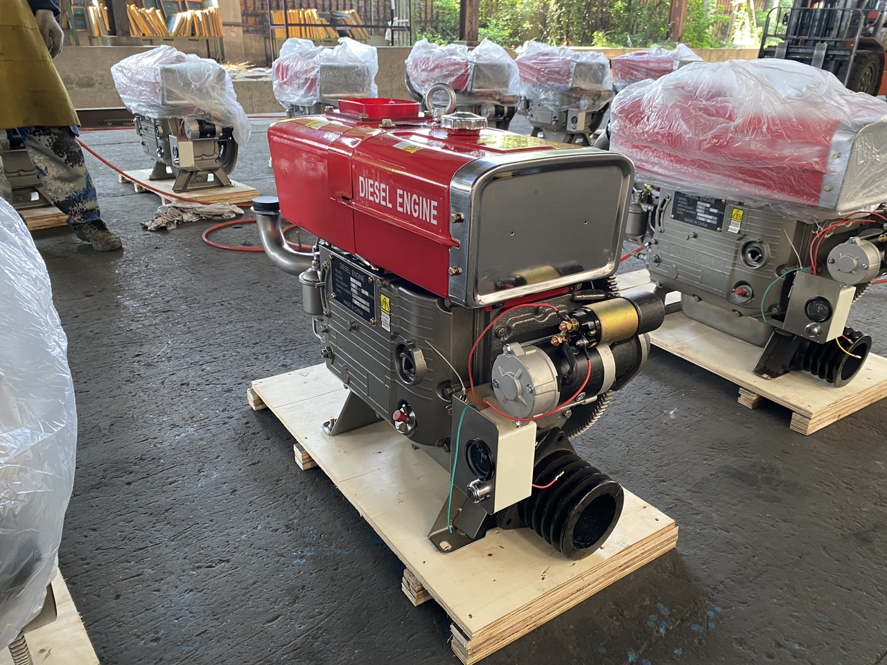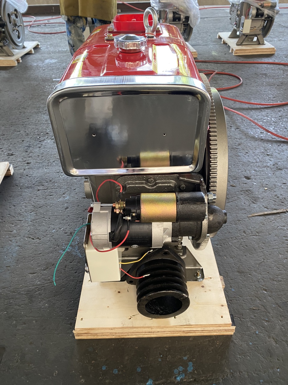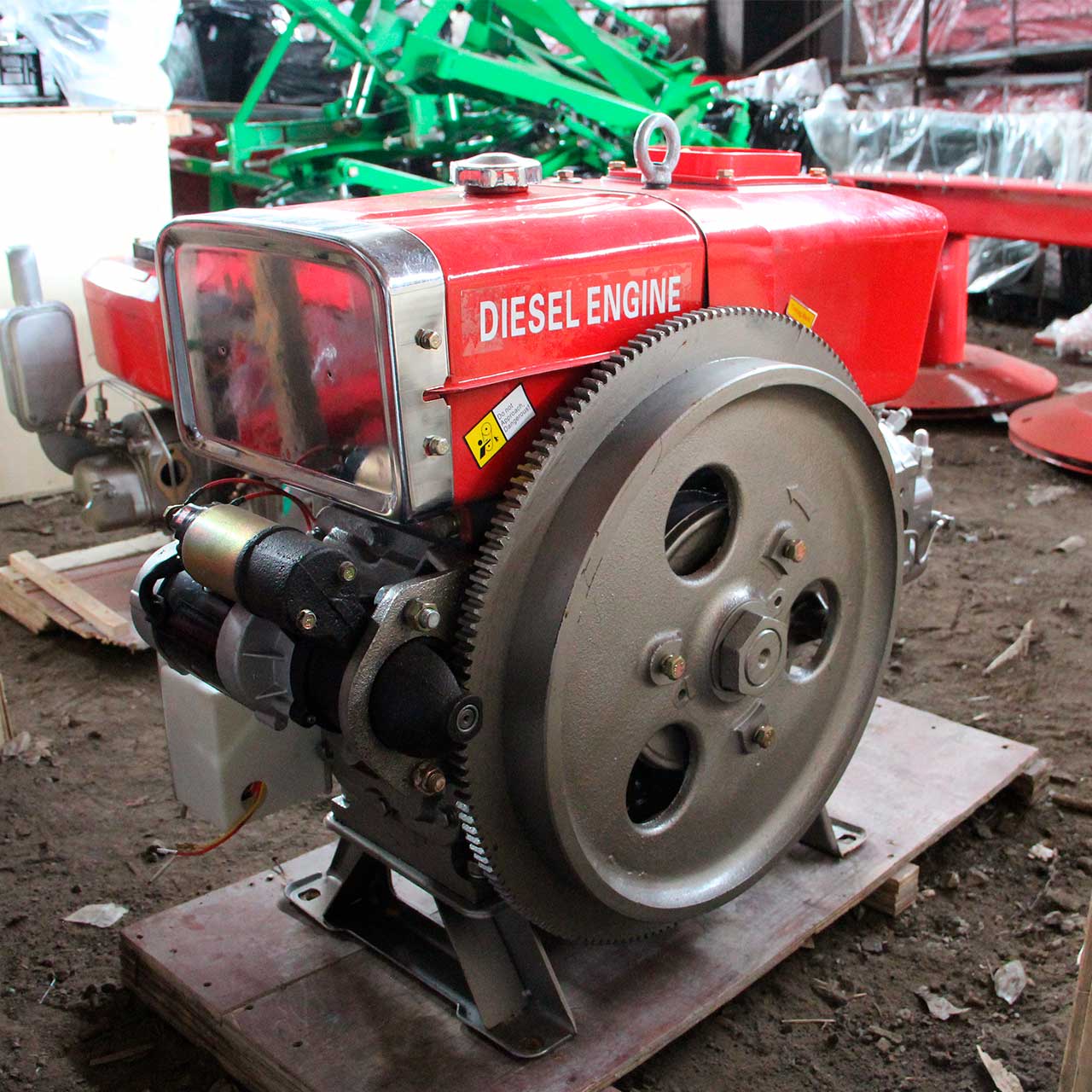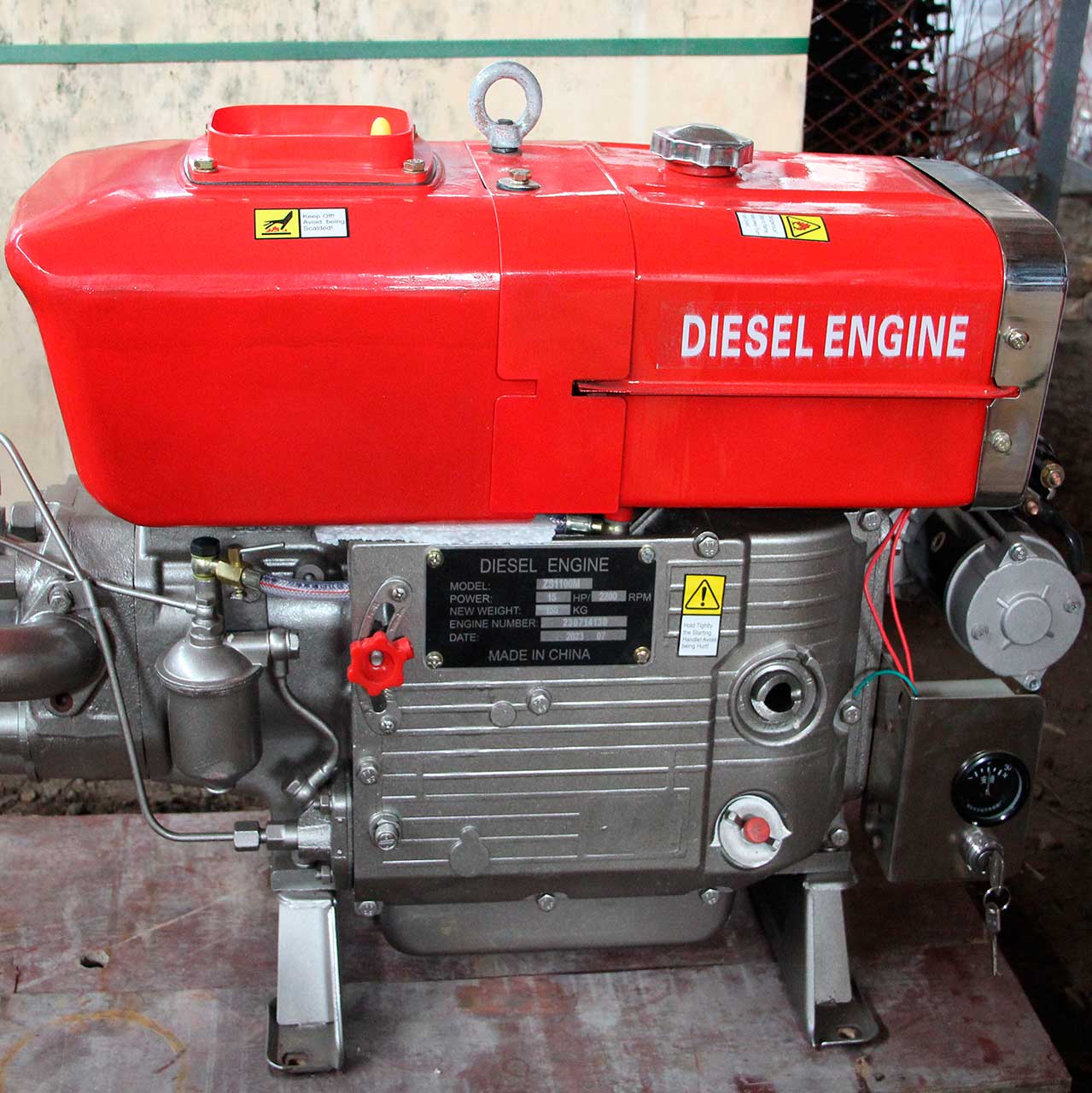 В комплект двигателя входят: Стартер, Генератор, ТНВД, топливный бак, бак охлаждения, замок зажигания, воздушный фильтр, шкив и ЗИП-набор.