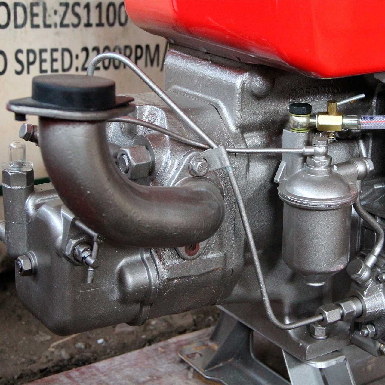На моделях ZS1100/ ZS1110/ ZS1115 используется система жидкостного охлаждения с испарительным конденсатором, Конструктивно Радиатор и вентилятор на этих моделях двигателя не предусмотрен. В бак заливается вода, тосол, антифриз. Внутри бака стоит гильза, которая охлаждается этой жидкостью. В саму гильзу вода не попадает. Для поддержания охлаждения необходимо вовремя доливать жидкость до нужного уровня, указателем является поплавок на капоте двигателя.