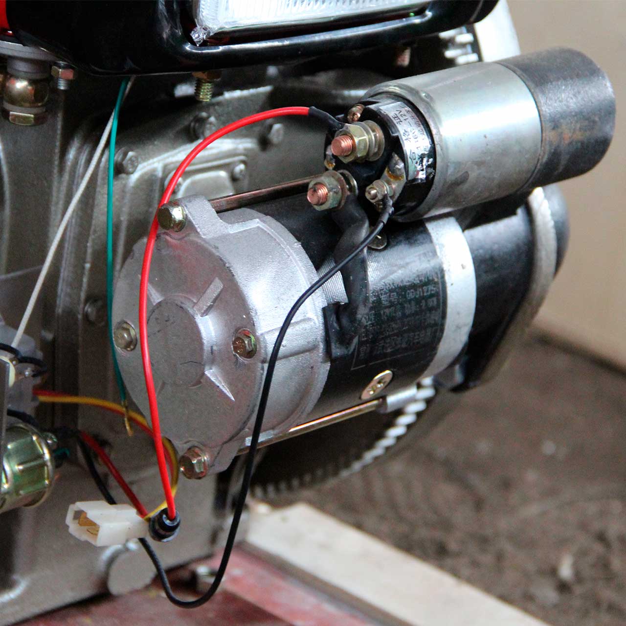 Генератор установлен за маховиком, мощность 12V