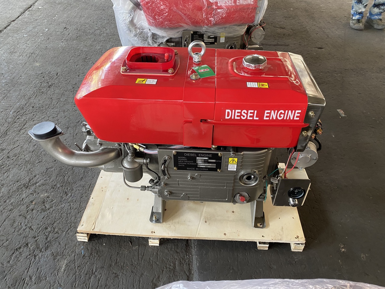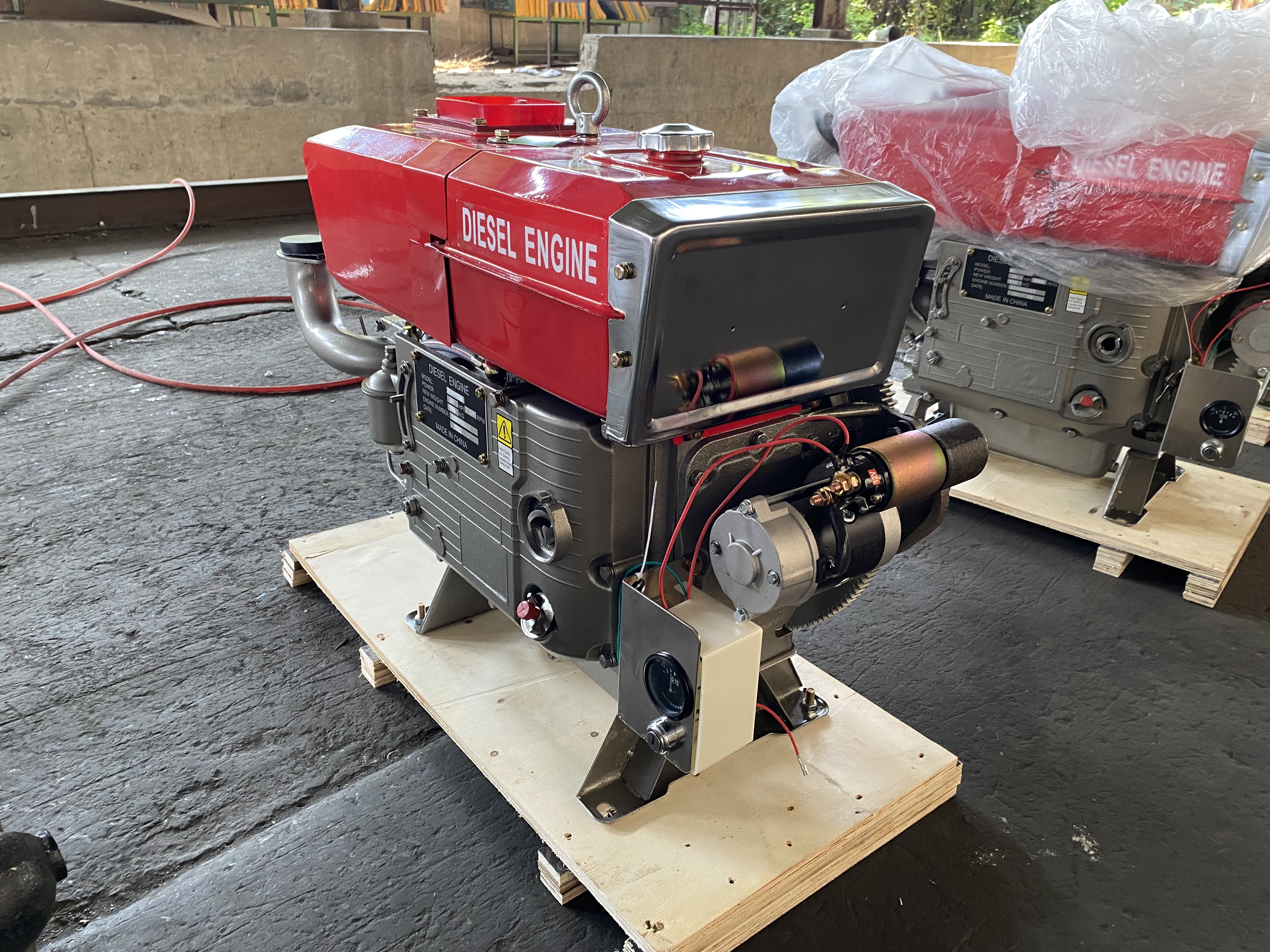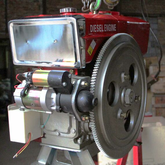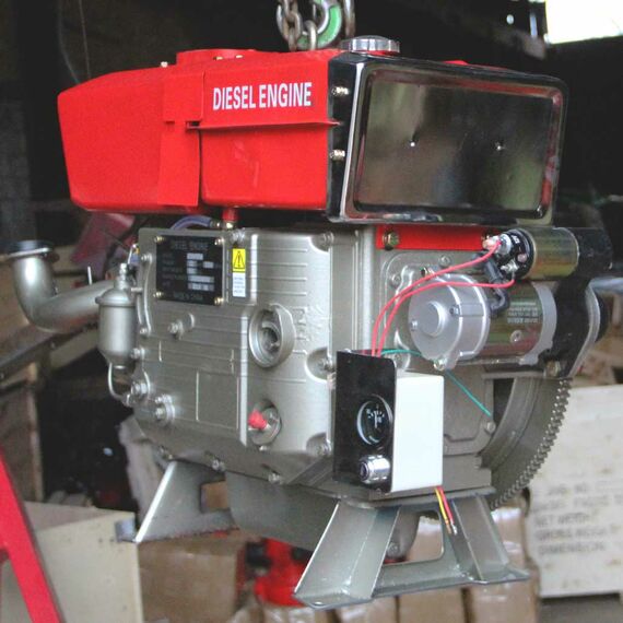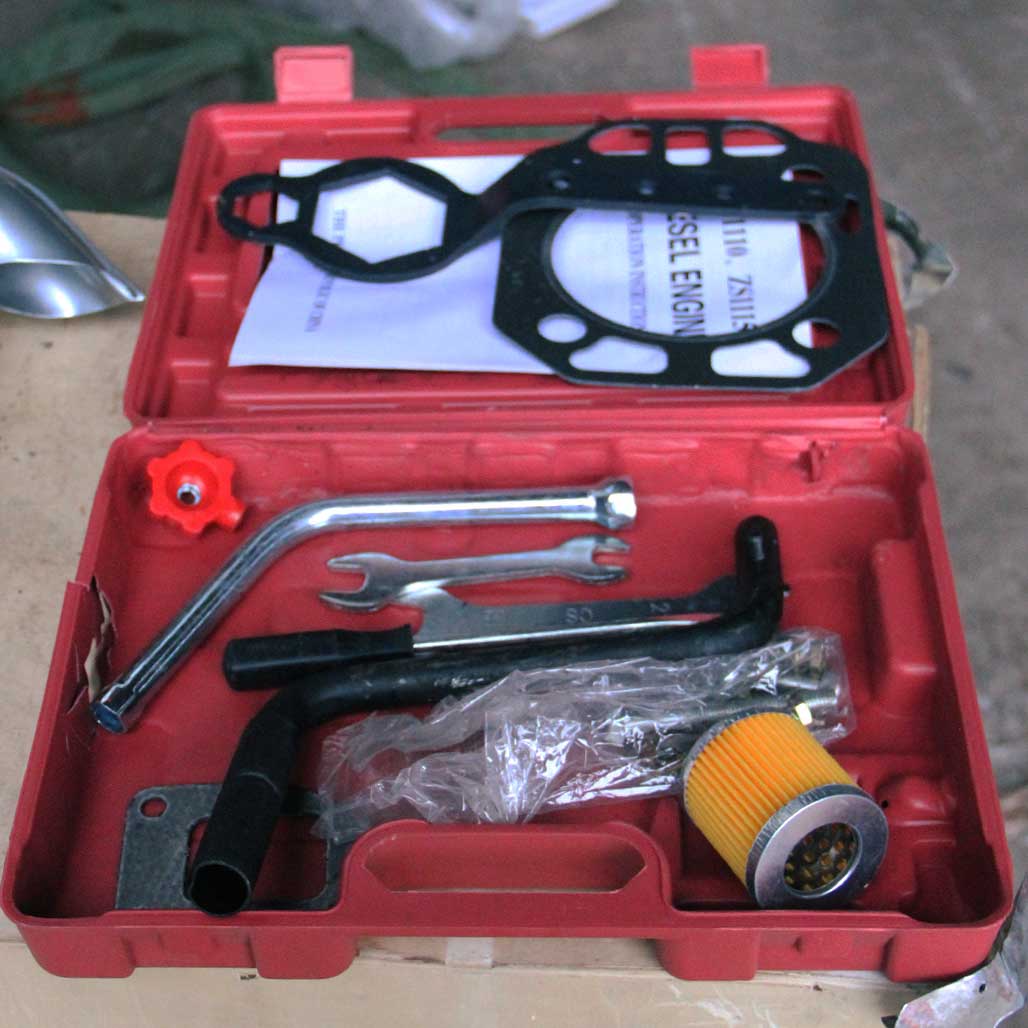 В комплект двигателя входят: Стартер, Генератор, ТНВД, форсунка, топливный бак, бак охлаждения, замок зажигания, воздушный фильтр, шкив и ЗИП-набор. Фильтр топливный, глушитель.
