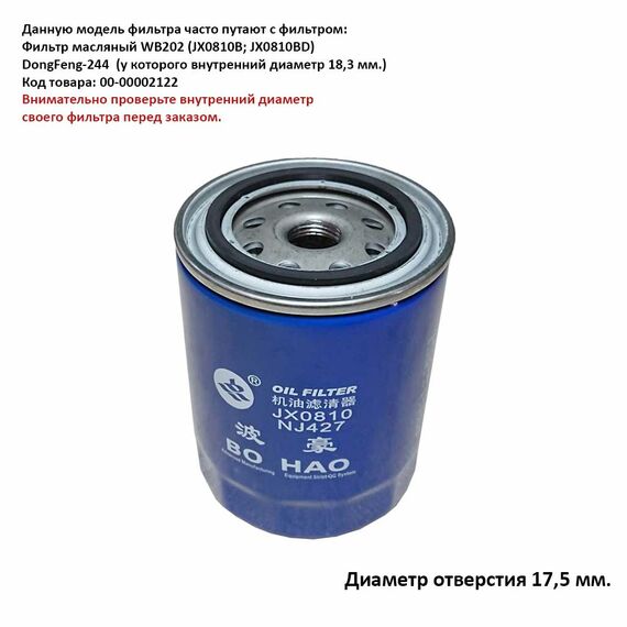 Данную модель фильтра часто путают с фильтром: Фильтр масляный WB202 (JX0810B