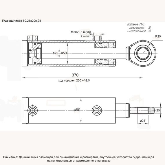 Гидроцилиндр 50.25.200 (без уха под доработку, под удлинение) - 50х25х200 ГЦ