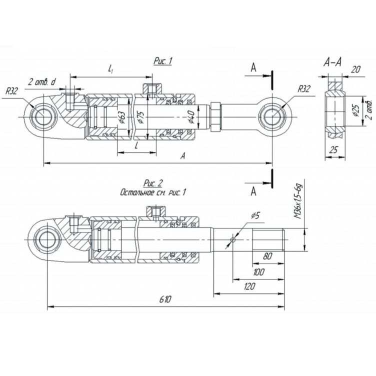 Диаметр штока = 40 мм.