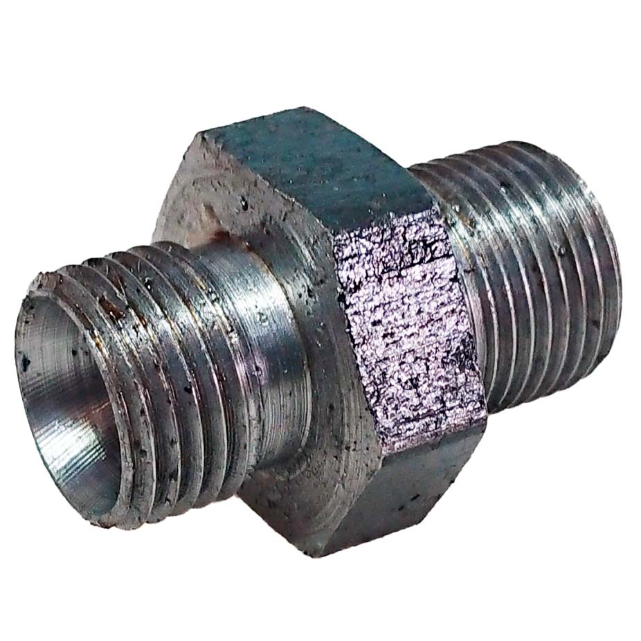Штуцер переходной применяется для соединения частей гидравлической схемы. В гидрораспределителях Р40 устанавливается в резьбовые оверстия раздачи с резьбой 3/8" под рукава с гайкой М20х1,5.