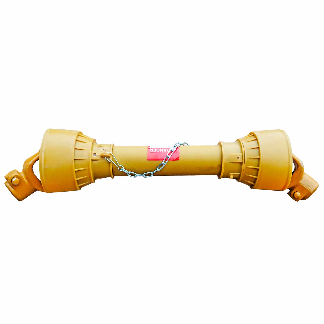 Карданный вал телескопический, раздвигается примерно на 30 % от общей длины в закрытом состоянии (по торцам вилок).