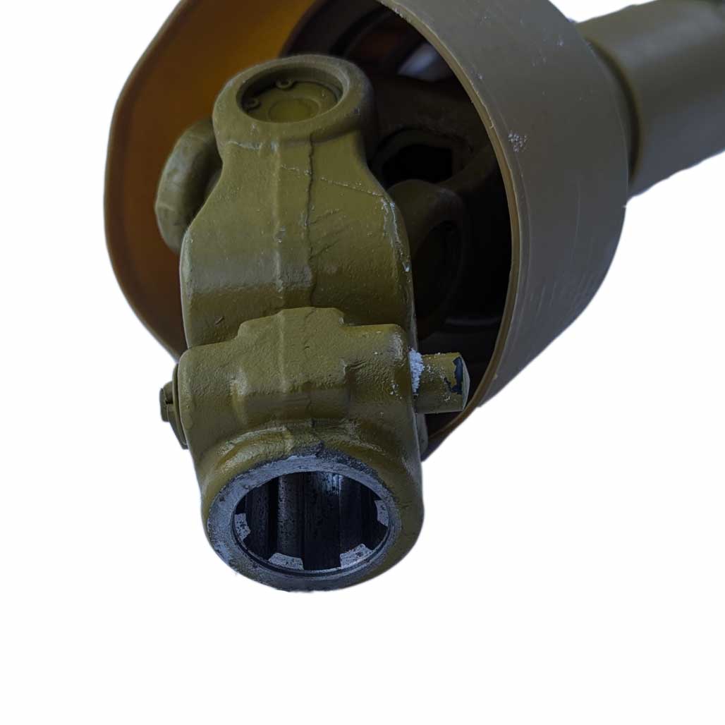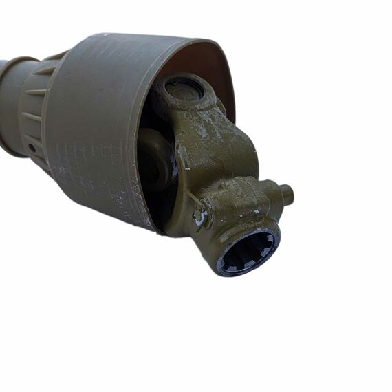Карданный вал телескопический, раздвигается примерно на 30 % от общей длины в закрытом состоянии (по торцам вилок).