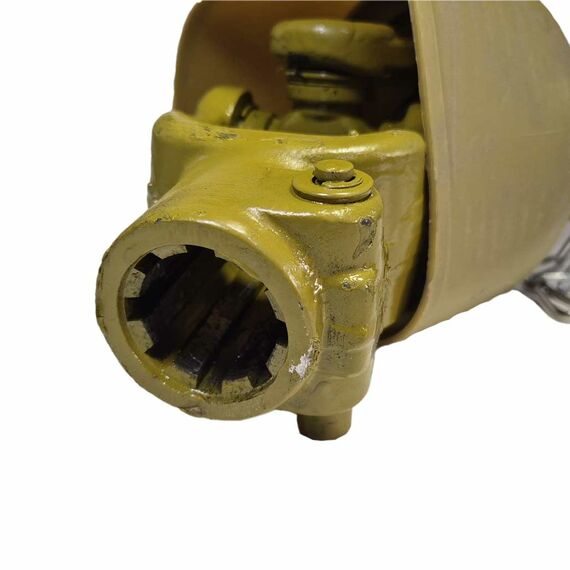 Карданный вал телескопический, раздвигается примерно на 30 % от общей длины в закрытом состоянии (по торцам вилок).