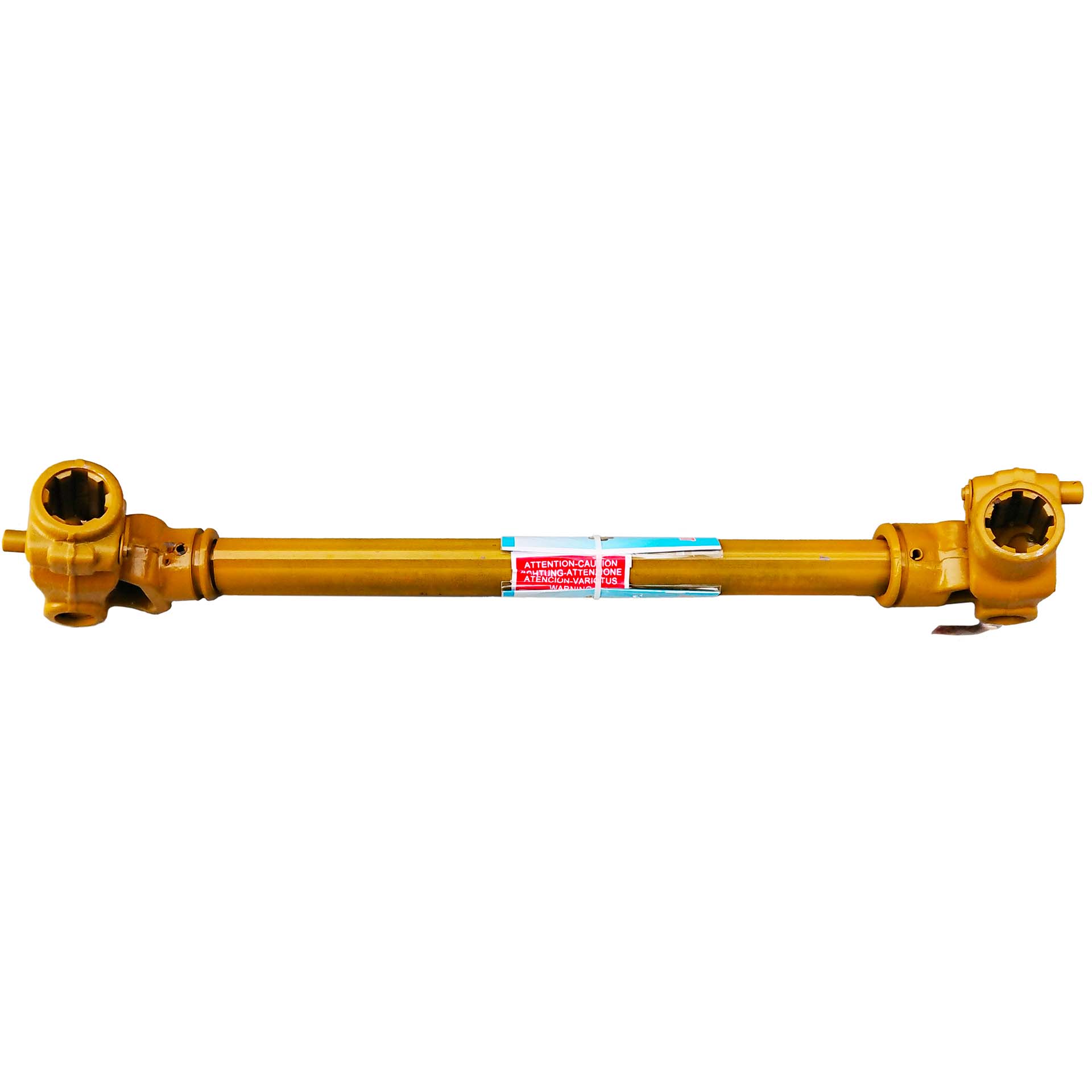 Карданный вал телескопический, раздвигается примерно на 30 % от общей длины в закрытом состоянии (по торцам вилок).