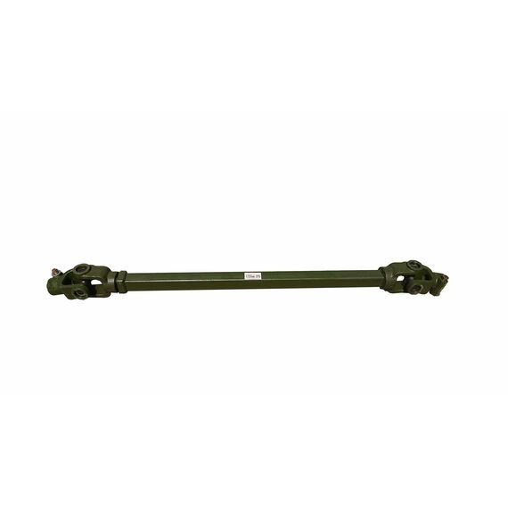 Карданный вал телескопический, раздвигается примерно на 30 % от общей длины в закрытом состоянии (по торцам вилок).