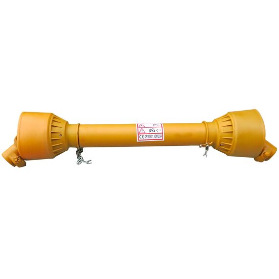 Карданный вал телескопический, раздвигается примерно на 30 % от общей длины в закрытом состоянии (по торцам вилок).