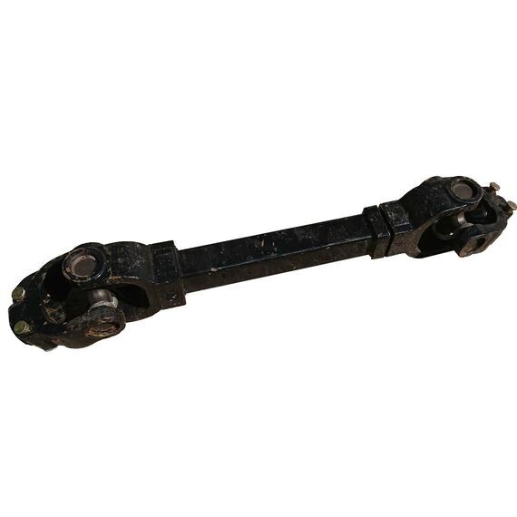 Карданный вал телескопический, раздвигается примерно на 30 % от общей длины в закрытом состоянии (по торцам вилок).