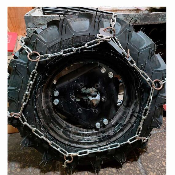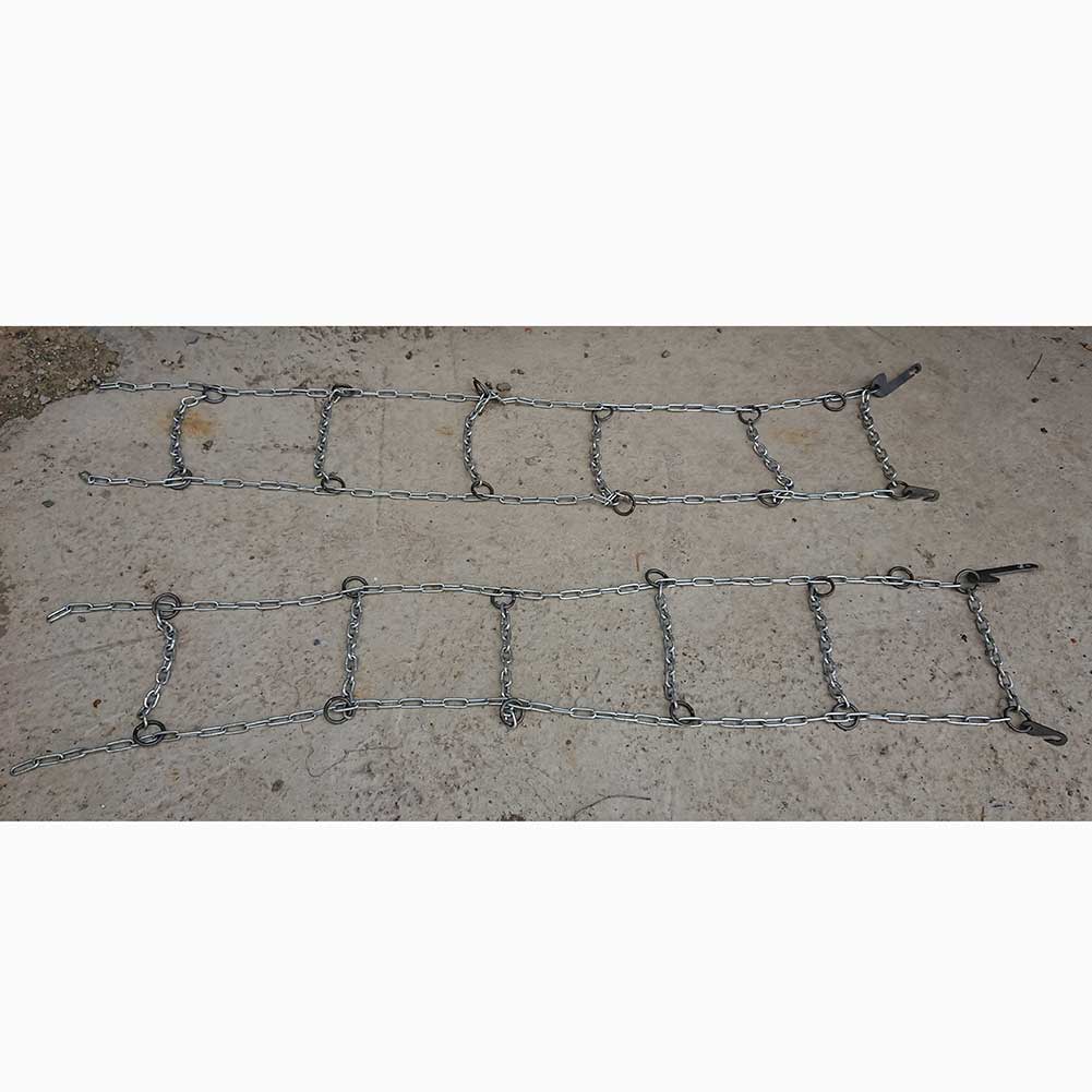 Комплект состоит из 2 цепей на 2 колеса размером 6,00-16 или 6,50-16 (елочка).