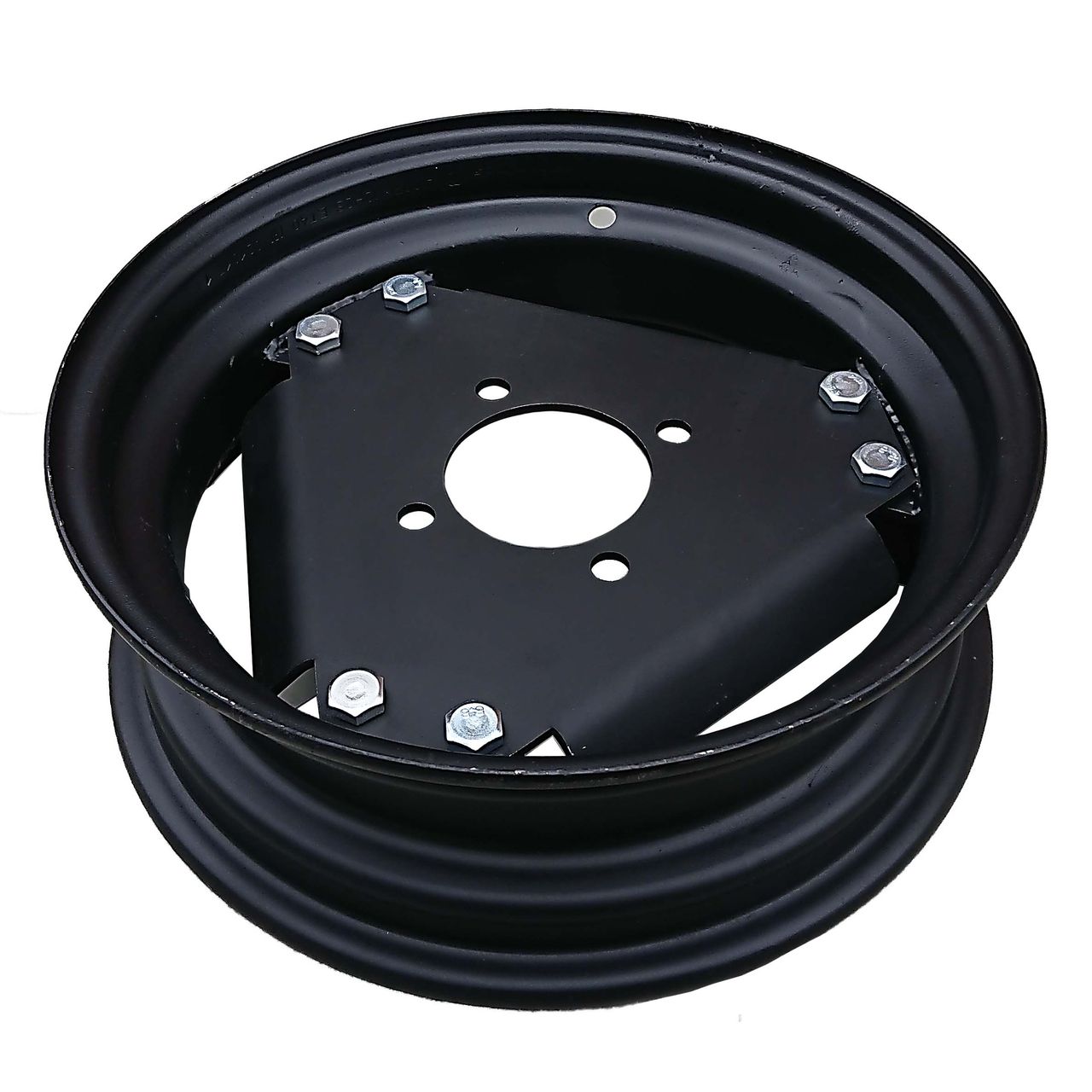 Диск устанавливается на заднеприводные тракторы Синтай с нераздвижной передней колеей. Засчет конструкции при переустановке внутреннего треугольника, крепящегося на болтах к ободу, другой стороной может быть увеличена межколесная колея суммарно на 100 мм (по 50 мм на сторону).