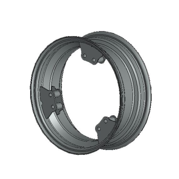 Сборный диск колеса позволяет при перестановке проставки увеличить колею передних колес трактора суммарно на 100 мм (по 50 мм на сторону).