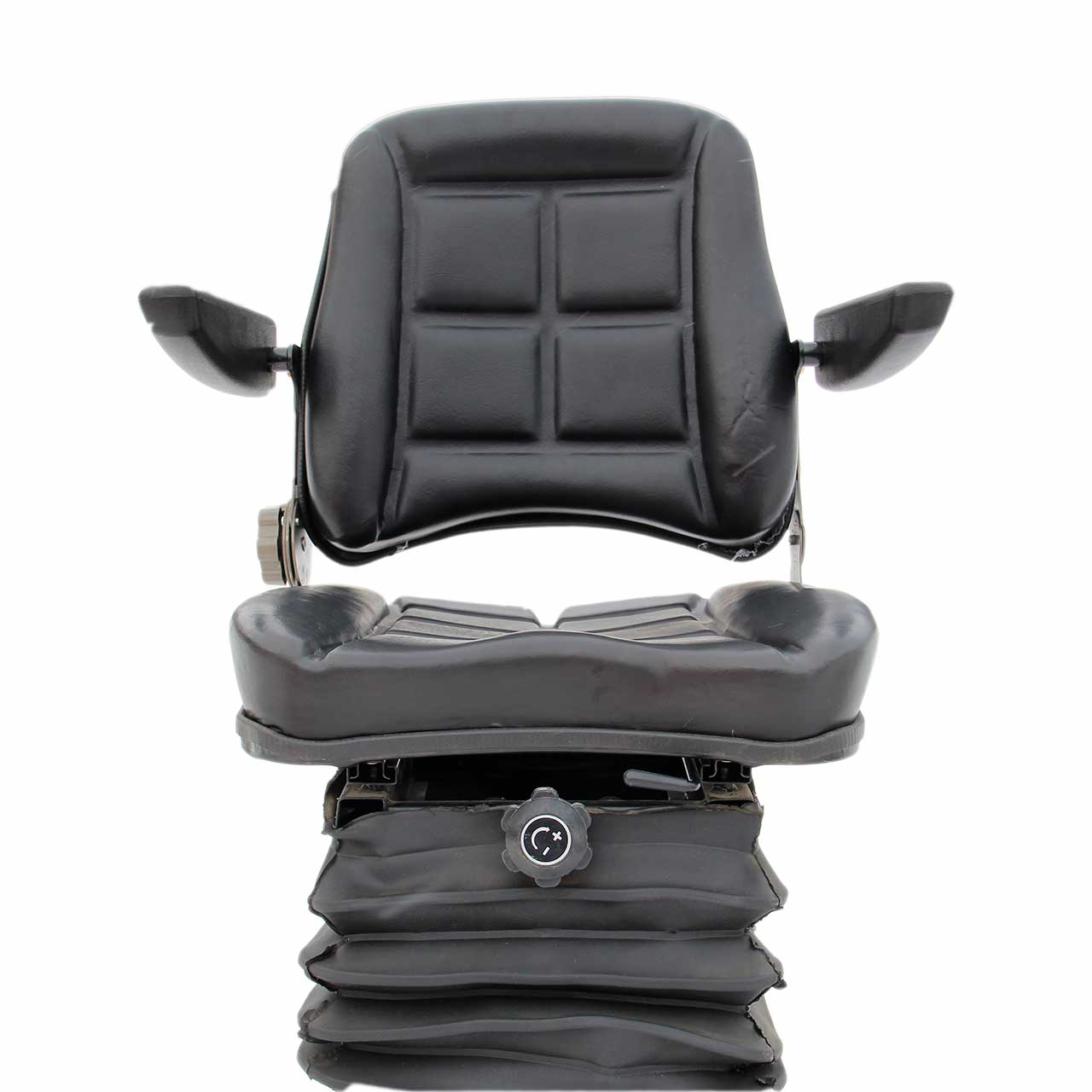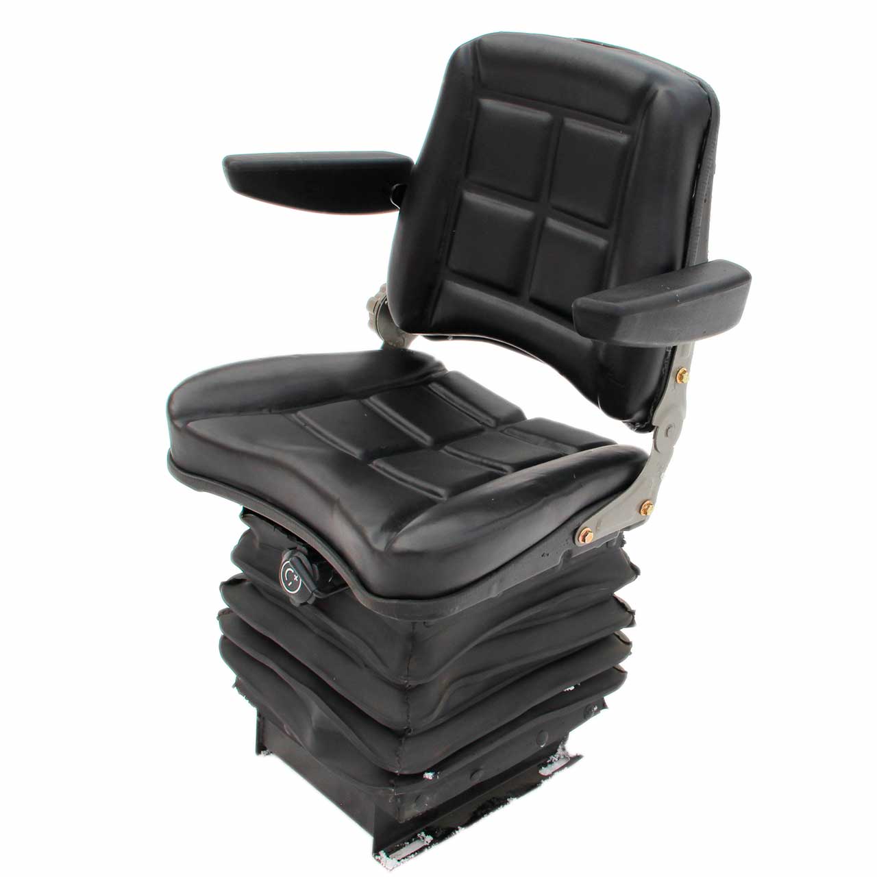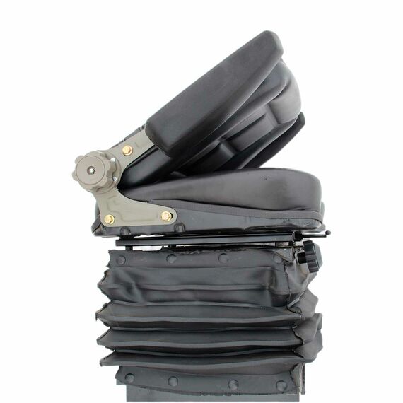 Сиденье тракторное подрессоренное с подлокотниками. Оснащено регулируемым амортизатором для комфортной работы оператора на неровных поверхностях. Обивка выполнена из прочного износостойкого кожзаменителя, устойчивого к влаге и загрязнениям. Металлический каркас обеспечивает надежность и долговечность. Подходит для установки на минитракторы, погрузчики и сельхозтехнику.