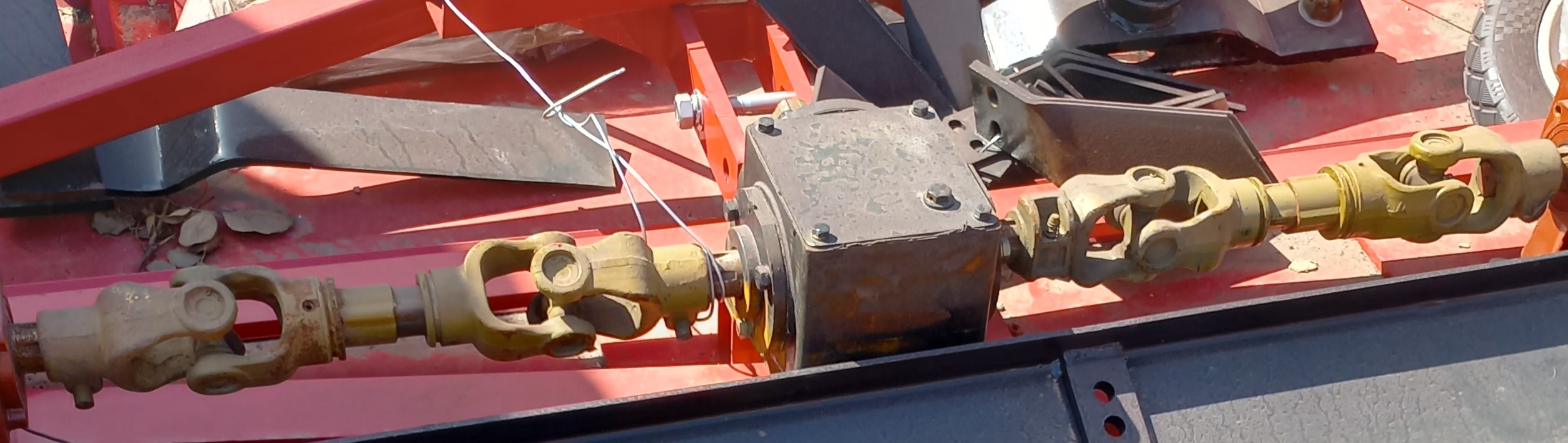 У редуктора передаточное отношение 1:1, т.е. если на входе 540-1000 об./мин, то и на выходе 540 -1000 об/мин, вращение двухстороннее. Валы крутятся в одном направлении, в ту сторону, в которую крутит ВОМ. Любой из валов может быть приводным. На фото вариант применения