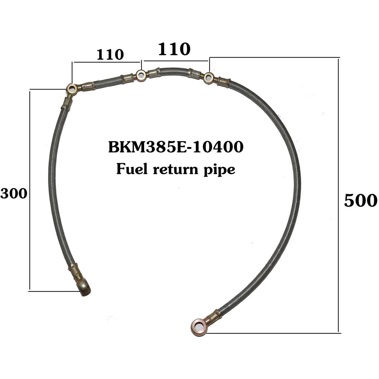 Топливопровод возврата топлива КМ385BT/LL380BT (под штуцер) Диаметр отверстий 12/8/8/8/12 мм - KM385T-10400 L=1170 мм.
