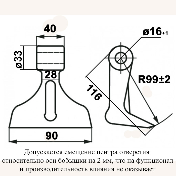 Расстояние от центра отверстия до кромки рабочей части = 99 мм.