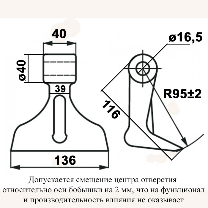 Ширина хвостовика = 40 мм.