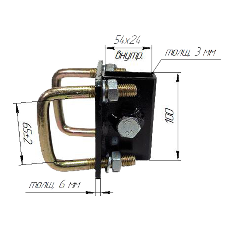 Габариты отверстия под стойку - 54х24 мм.
