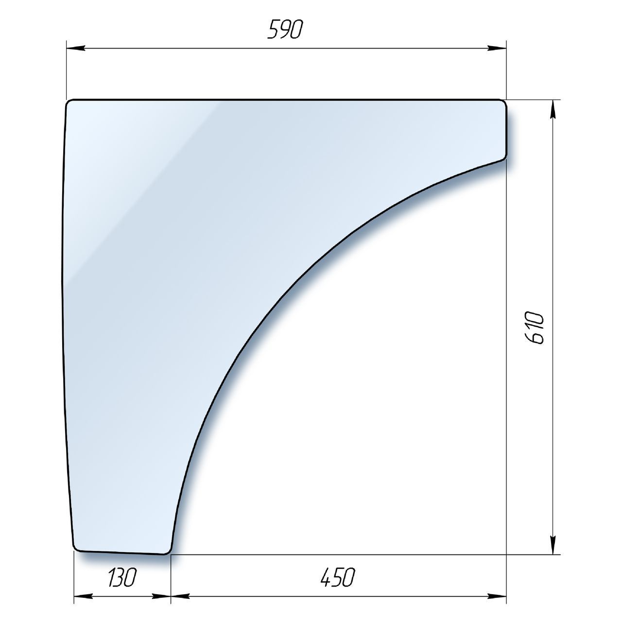 Стекло дверное левое (нижнее) кабинное DF-244 (Люкс) - (610х590) DF-244.59.004