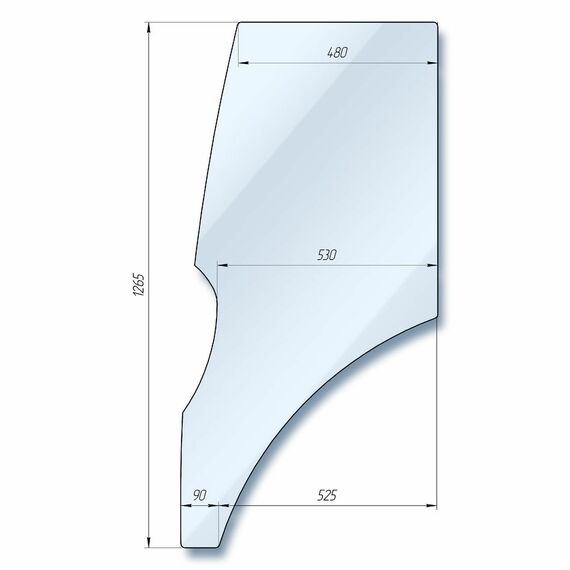 Стекло дверное правое кабинное DF-244/304/354/404 (Простое) - 1265х480 (DF-244.59.009A-01)