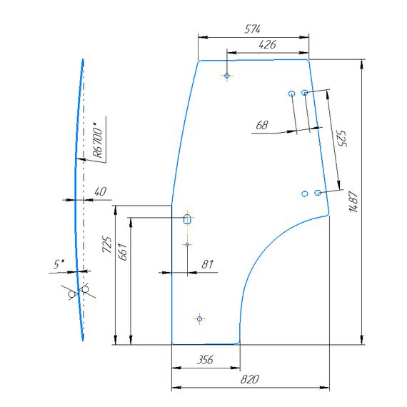 Стекло дверное гнутое левое устанавливается на кабины нового образца Jinma, поставляемые с середины 2021 года по настоящее время.