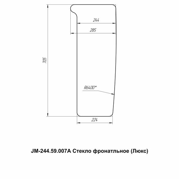 Стекло фронтальное кабинное JM-244 Kpl (Люкс)/JM-354 - 705х288 (JM-244.59.007А)