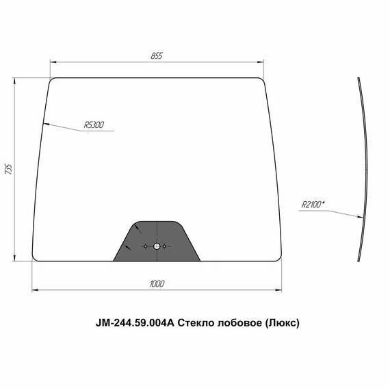 Стекло лобовое кабинное JM-244 Kpl (Люкс "А")/JM-354 - JM-244.59.004А (735x855x1000)