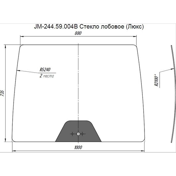 Стекло лобовое кабинное JM-244 Kpl (Люкс "В")/JM-354 - JM-244.59.004В (735x880x1000)