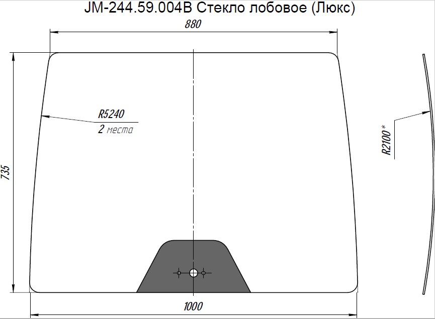 Стекло лобовое кабинное JM-244 Kpl (Люкс "В")/JM-354 - JM-244.59.004В (735x880x1000)