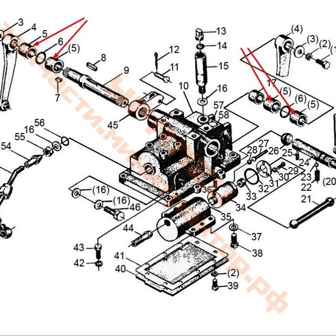 Устанавливается втулка в корпус гидробака с обеих сторон, а затем в них устанавливается подъемный вал
