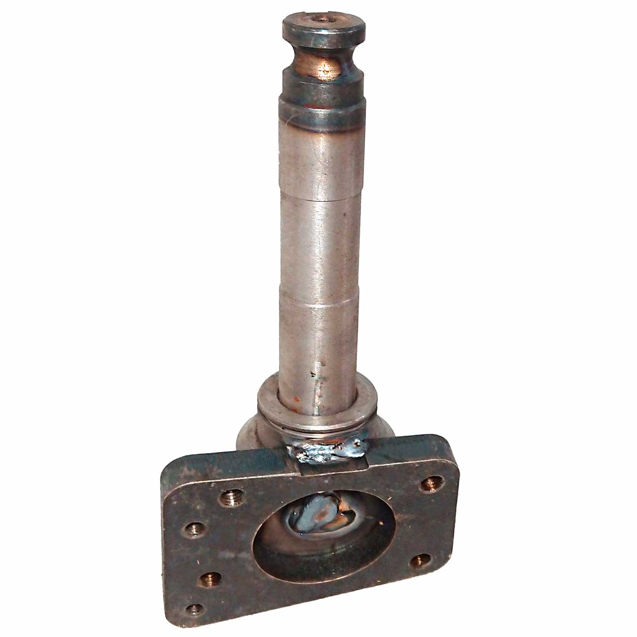 Данная конструкция является устаревшей, устанавливалась на заднеприводные минитрактора Уралец до 2021 года. Установить данную цапфу на действующий неведущий передний мост невозможно. У цапфы нового образца на оси отсутствует шпонпаз, а диаметр торца оси - 30 мм.