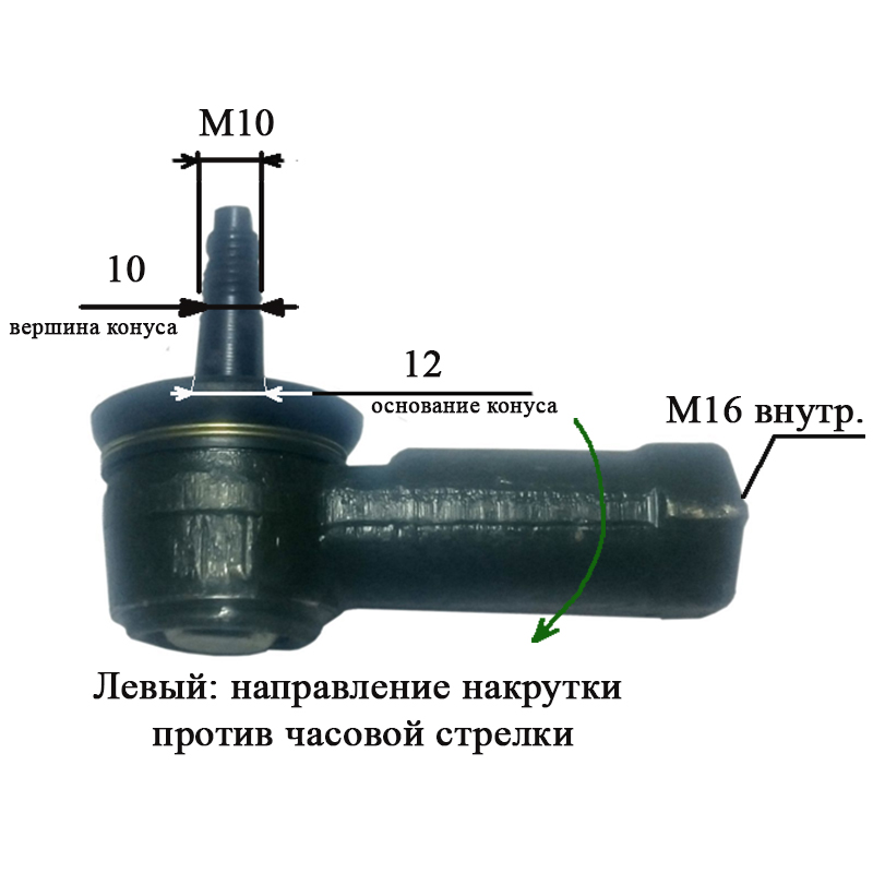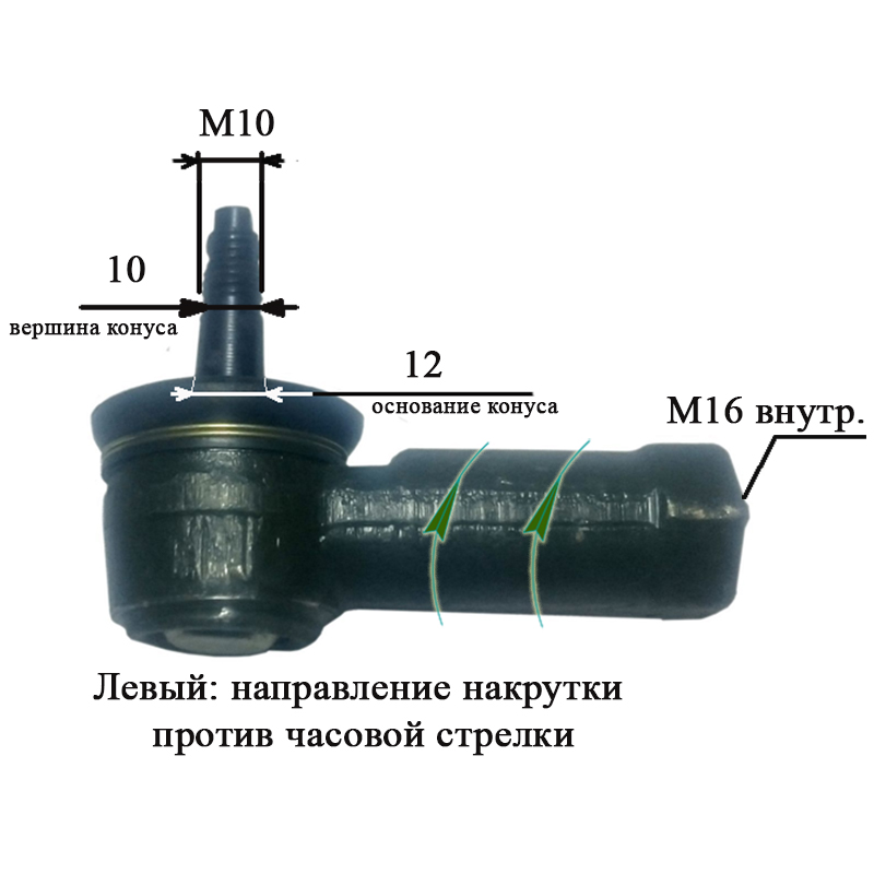 Наконечник поворотный резьба внутренняя М16/М10, D-12 мм. левый - 160.31.019